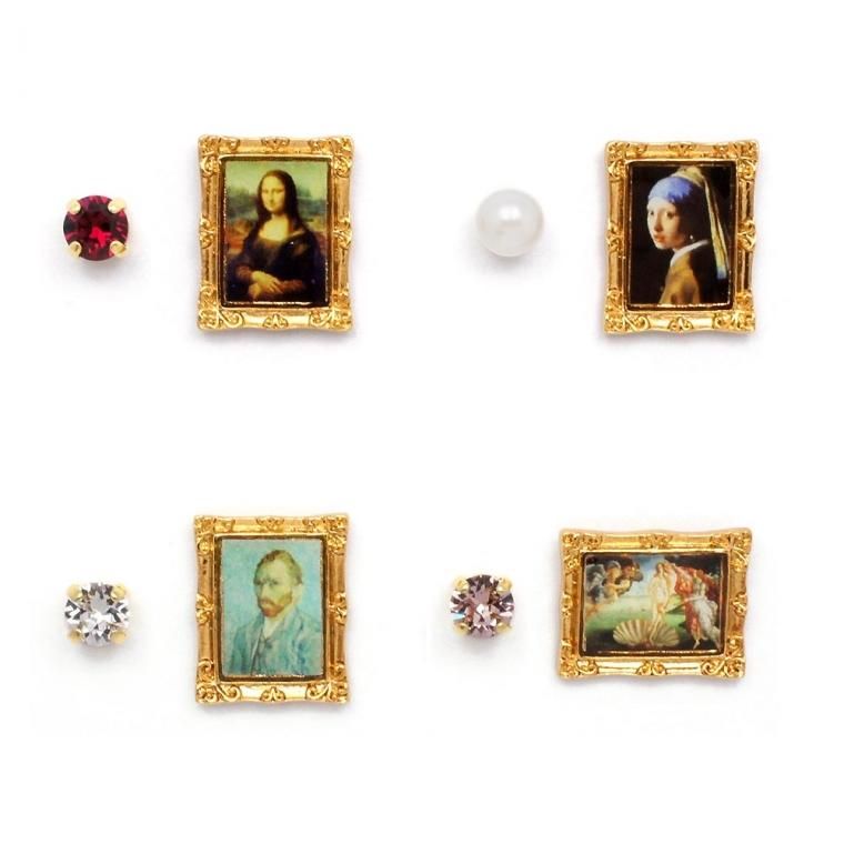 世界的に有名な名画をアクセサリーにしました!小さいながらも精巧に作られた額と、アシンメトリーなデザインがポイントです。