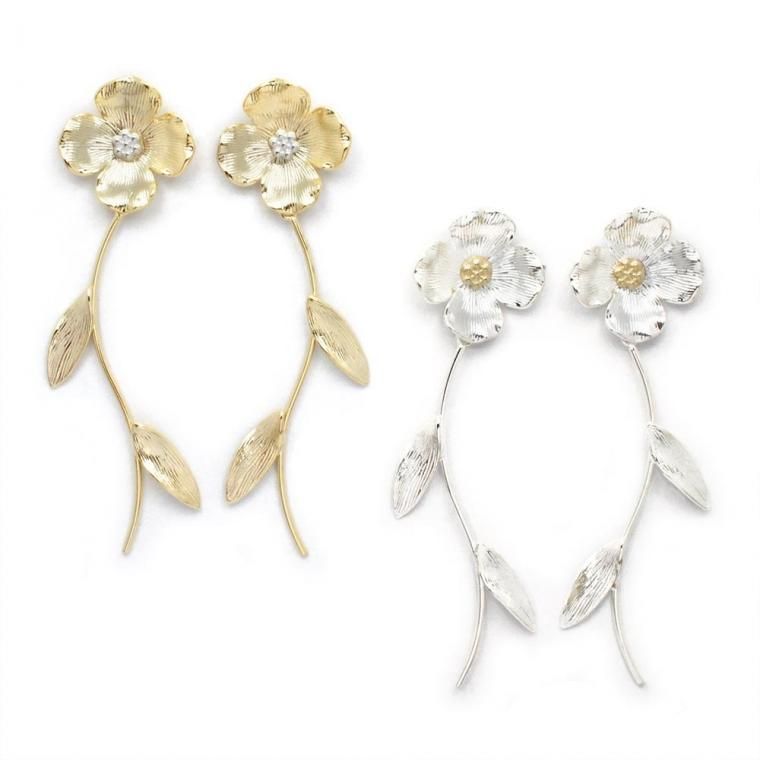 美しくリアルな花の表現が特徴のアクセサリー。ヴィンテージ風のゴールドとシルバーの色合わせが品良く見せてくれます。