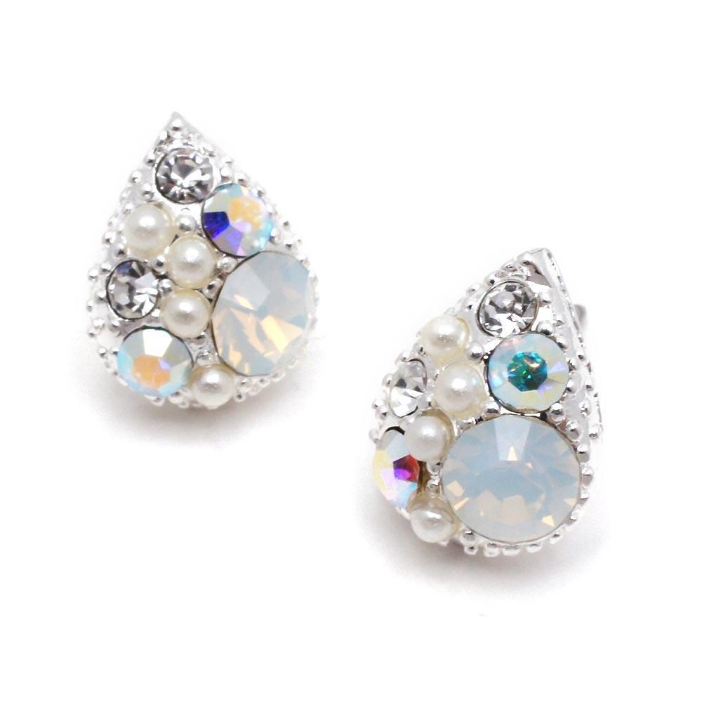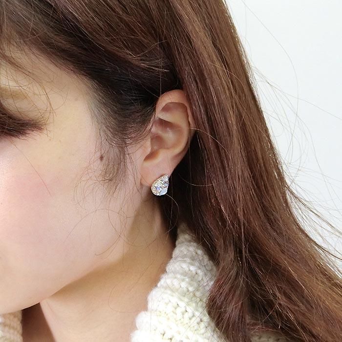 小粒のパールとビジューをあしらったドロップ型のアクセサリー。程良い輝きが耳周りを品良く飾ってくれます。
