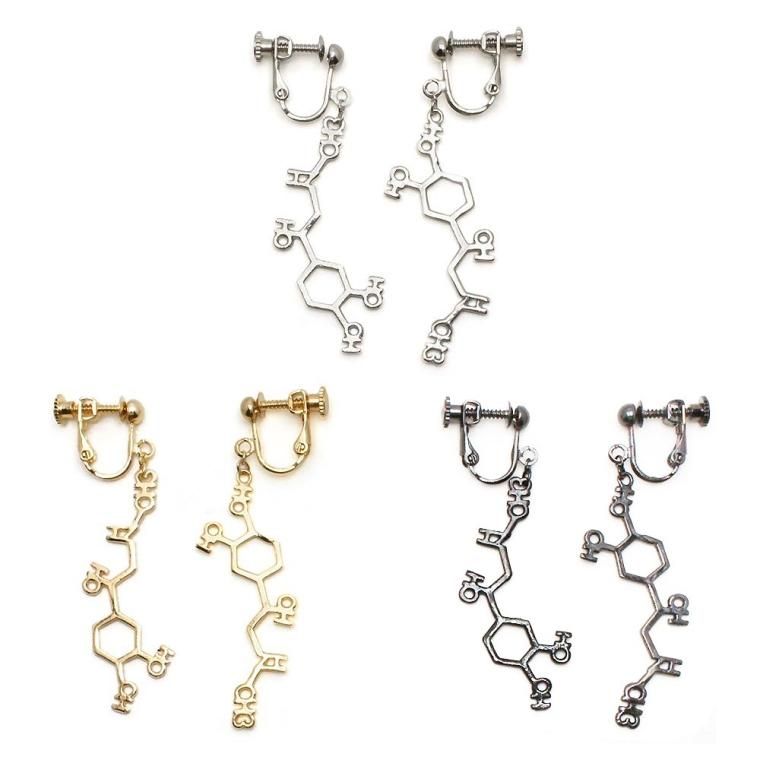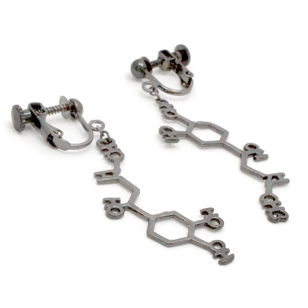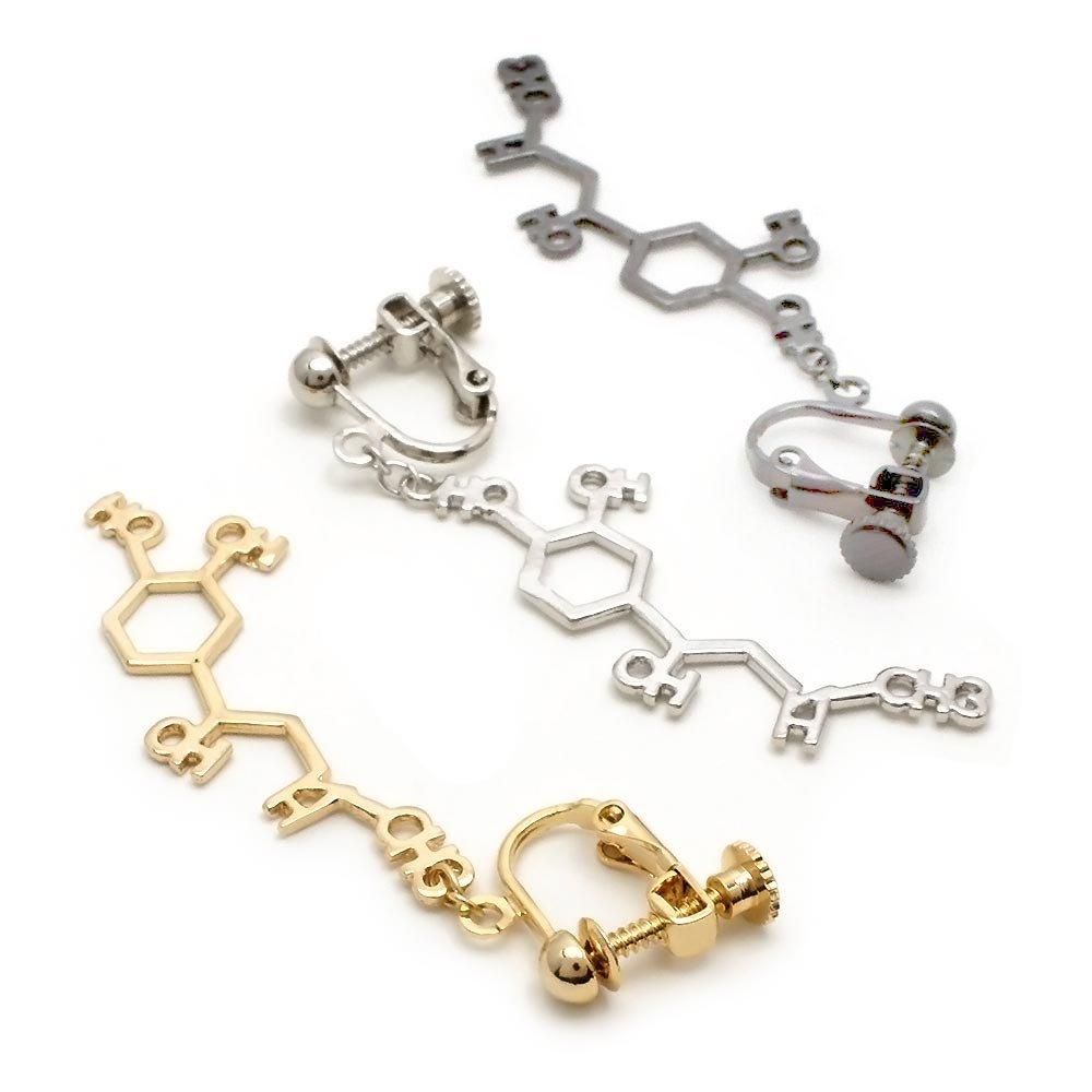アドレナリンの構造式をアクセサリーにしました。複雑な構造式が幾何学模様のようにも見え、オシャレな雰囲気も感じさせてくれます。