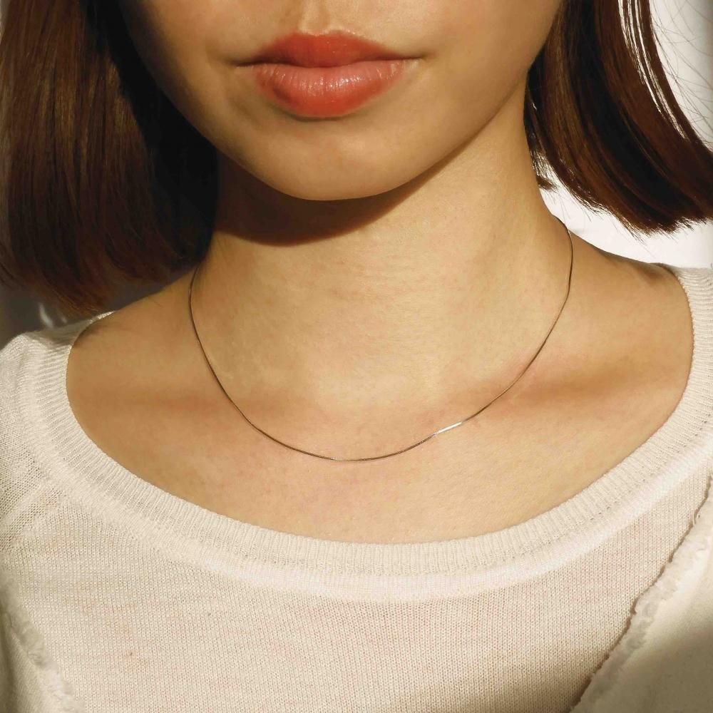 キラリと光るチェーンがつややかで美しく、デコルテに映えるネックレスです。