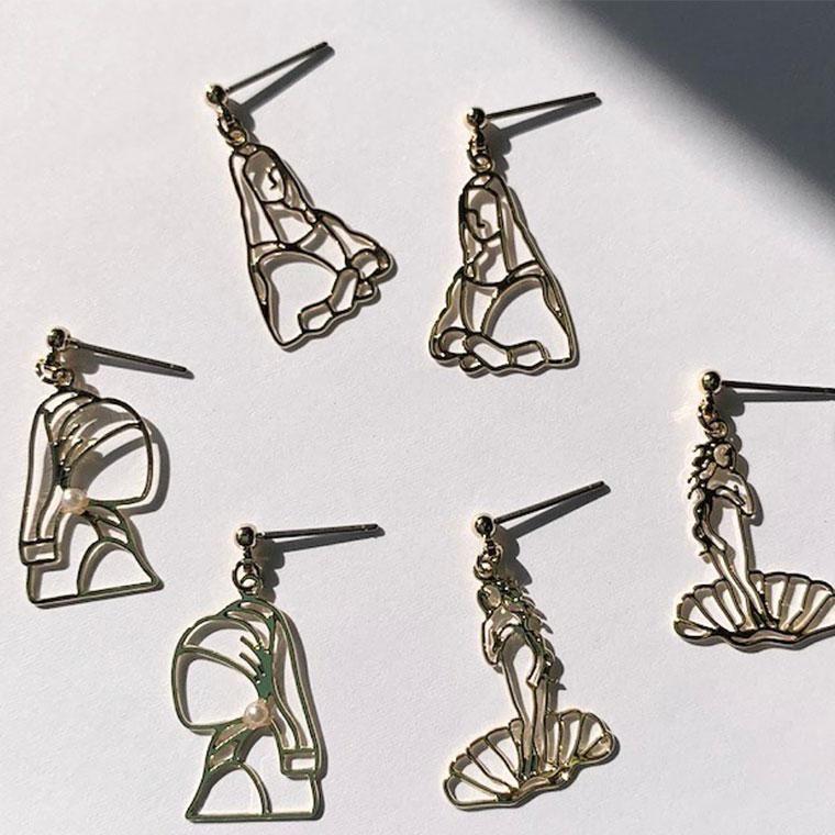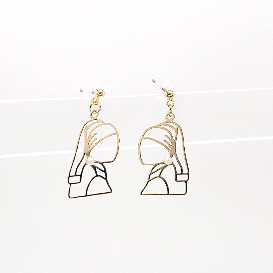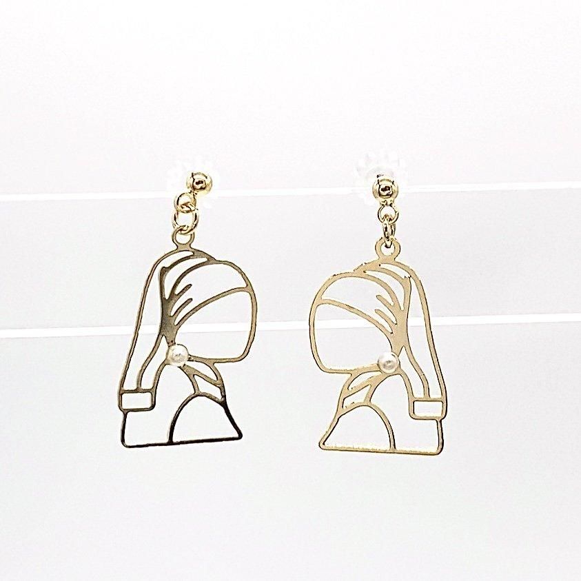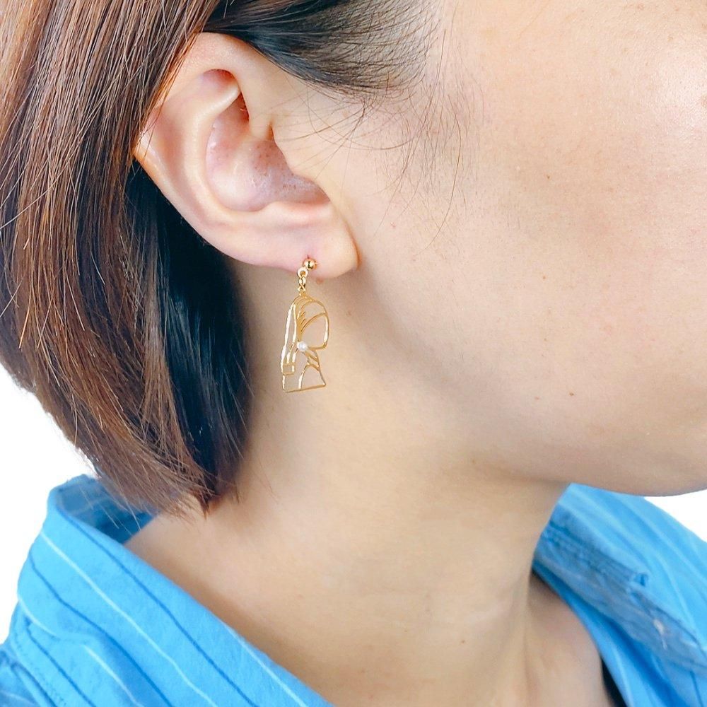 名画シリーズで人気の真珠の耳飾りの少女がメタルピアスになりました。さりげなく付いたパールがポイントです!