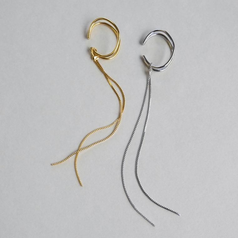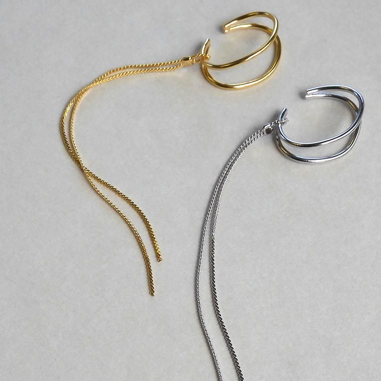 エレガンスチェーンが付いたイヤーカフ。耳元で繊細に揺れ、凛とした横顔を演出してくれます。