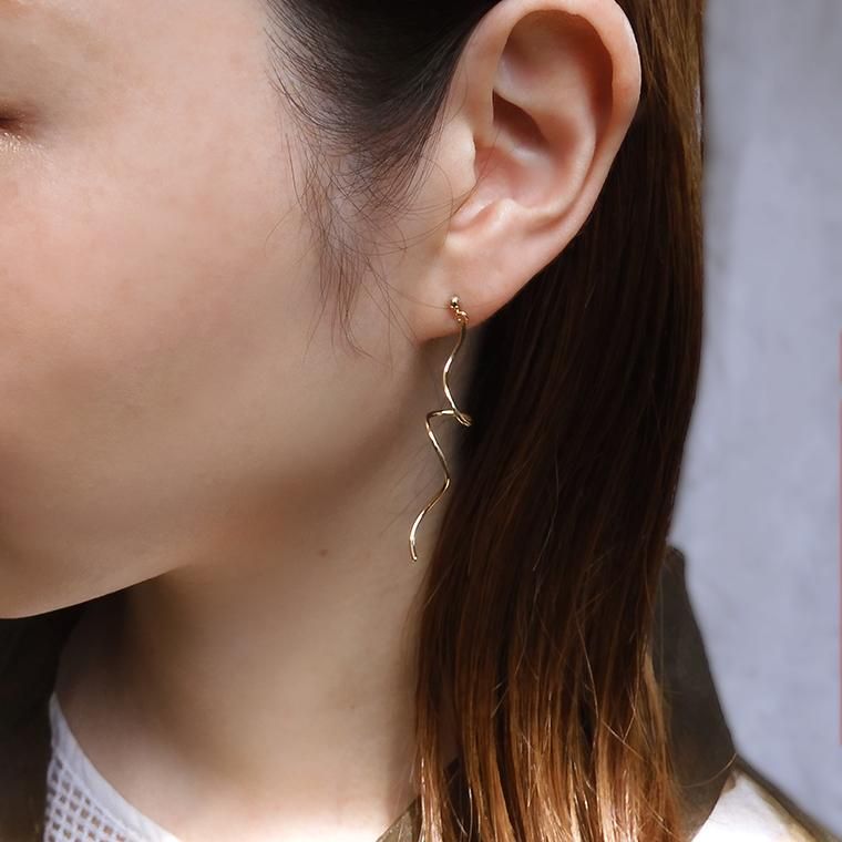 ささっとペンで書いたようなシルエットのピアス。落ち感のある形を意識し作りました。どんなコーディネートにも合う万能デザインです。