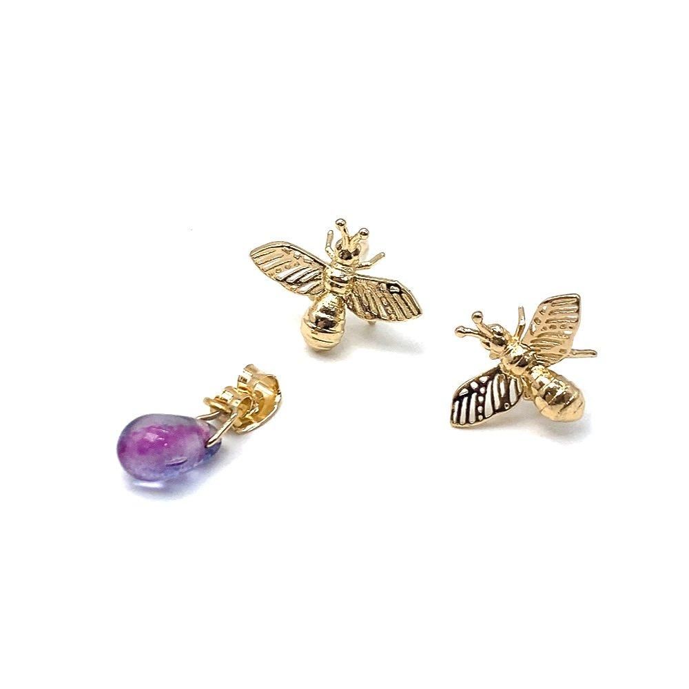 リアルな蜂のピアスです。 見る位置によって変わるチェコビーズのグラデーションがポイントです。