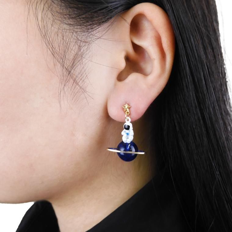 土星に座る夢を叶えたロマン溢れる宇宙飛行士のピアス。