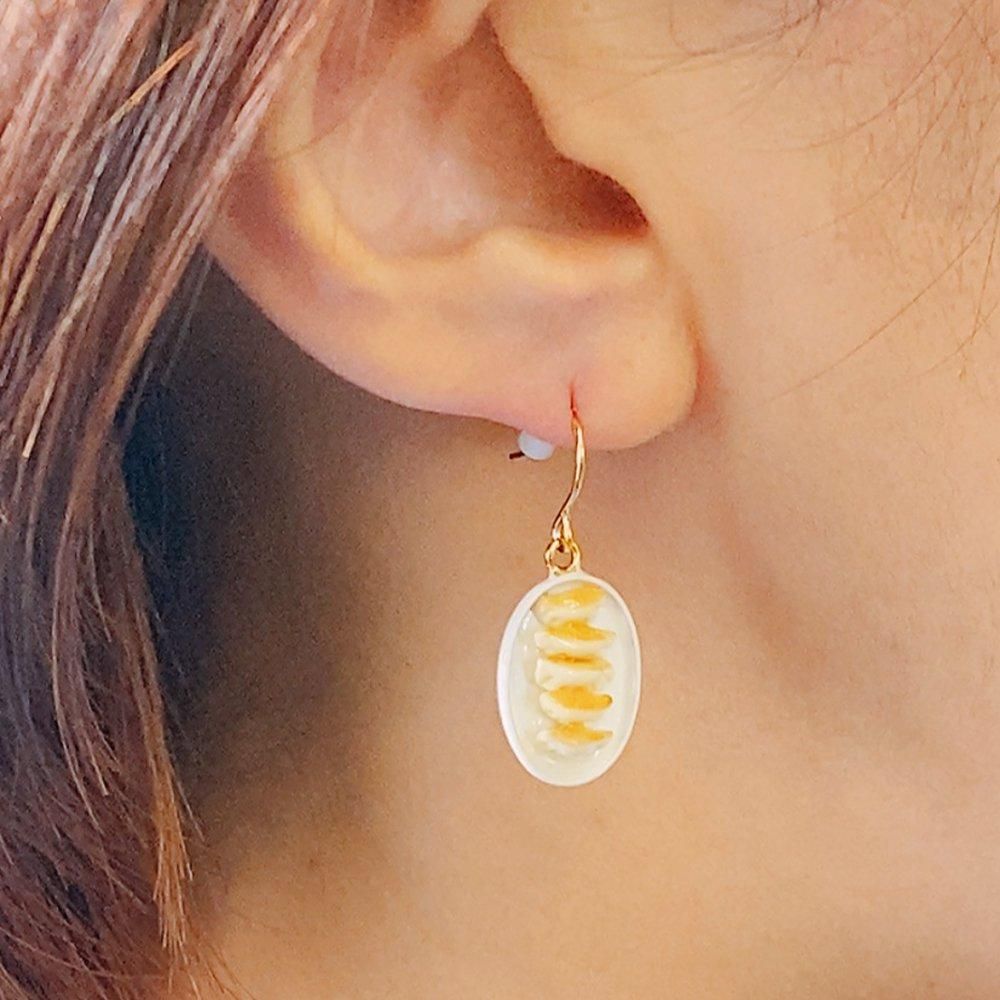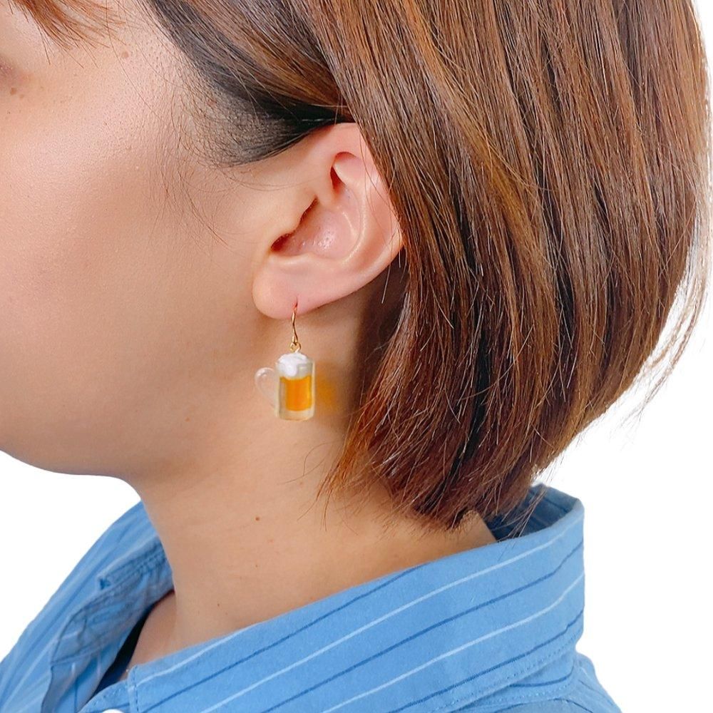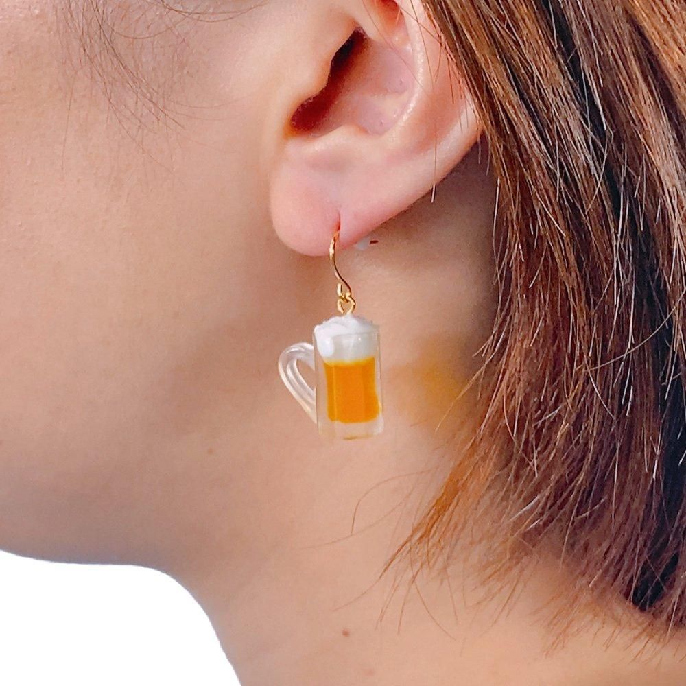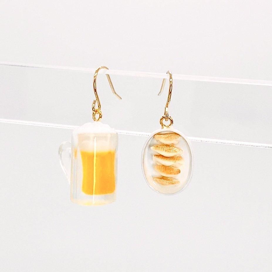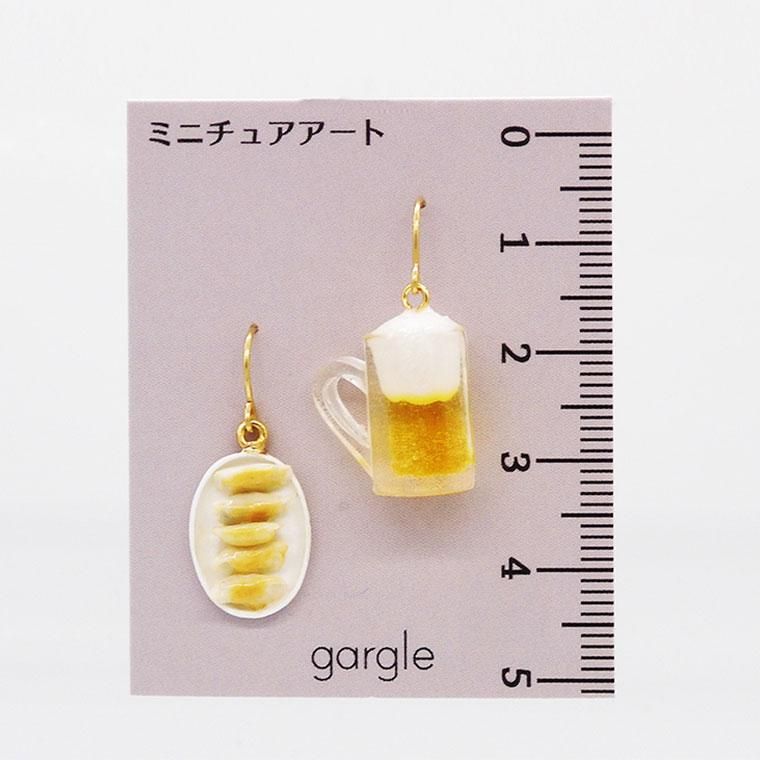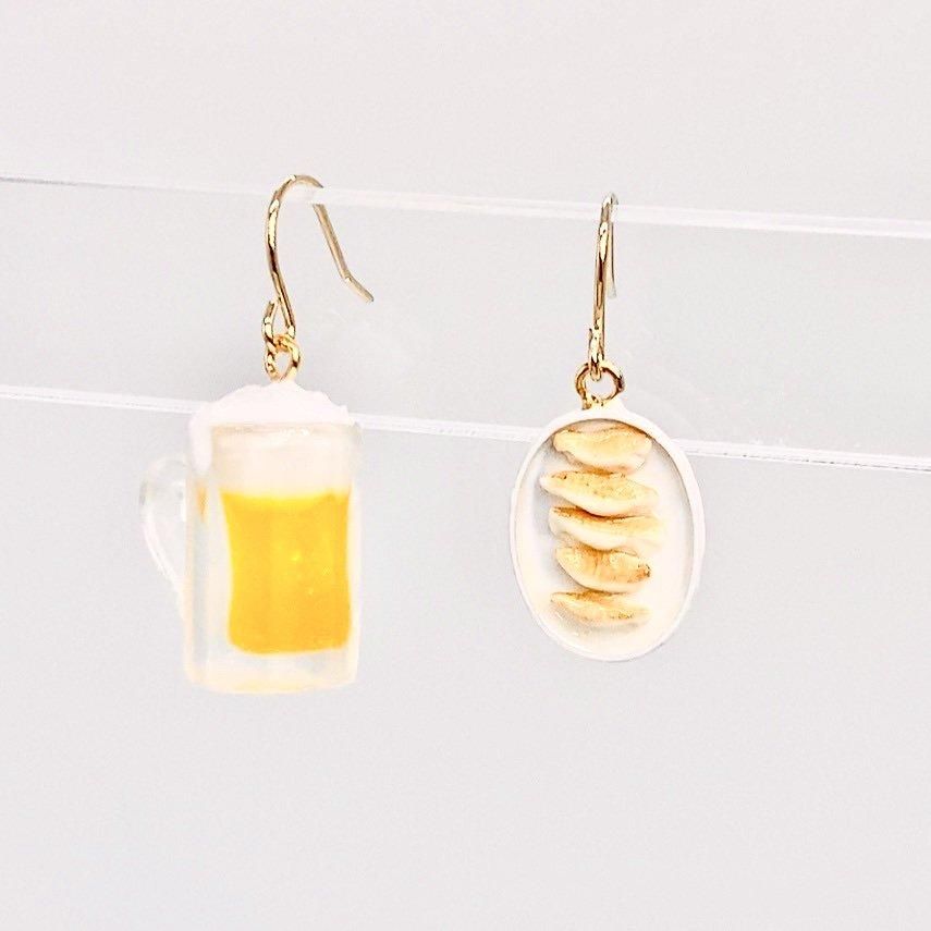 焼き目が美しい餃子をお供に、、、な晩酌セットのミニチュアピアスです。