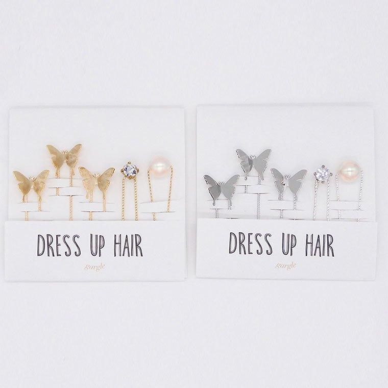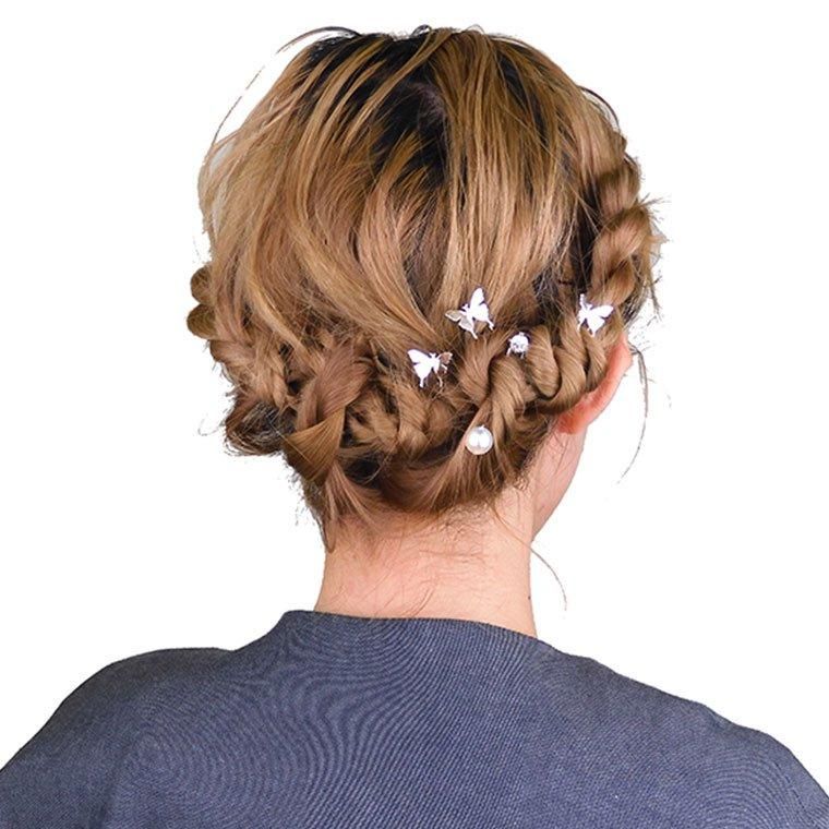 蝶々が止まっているようなロマンティックなヘアスタイルを作れる髪飾り。