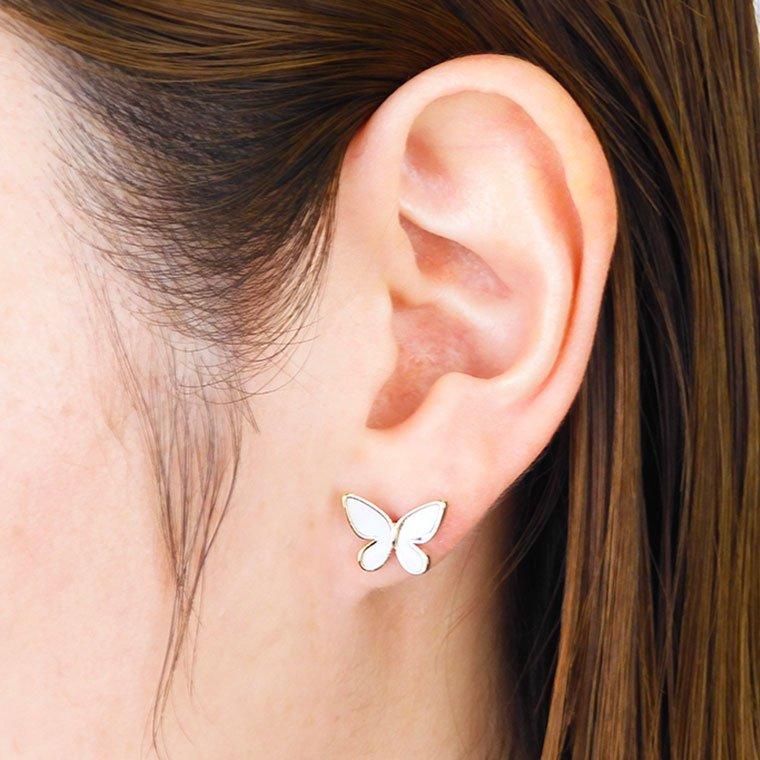 ジュエリーのデザインをカジュアルに使いやすくしたピアス。 シェルの煌めきがポイントです。