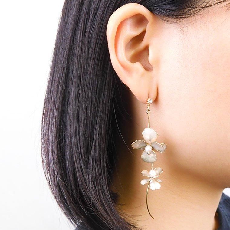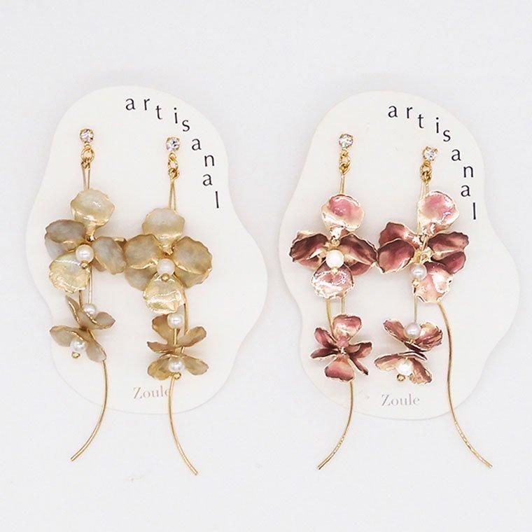 お花がゆらゆら揺れるデザインが、さりげなく耳元を華やかにしてくれます。カジュアルにもオケージョンにも使えるお花ピアスです。