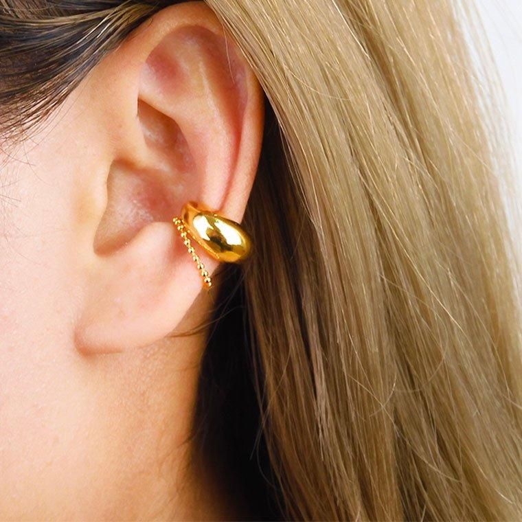 耳元に垂れるチェーンが目を惹くイヤーカフ。