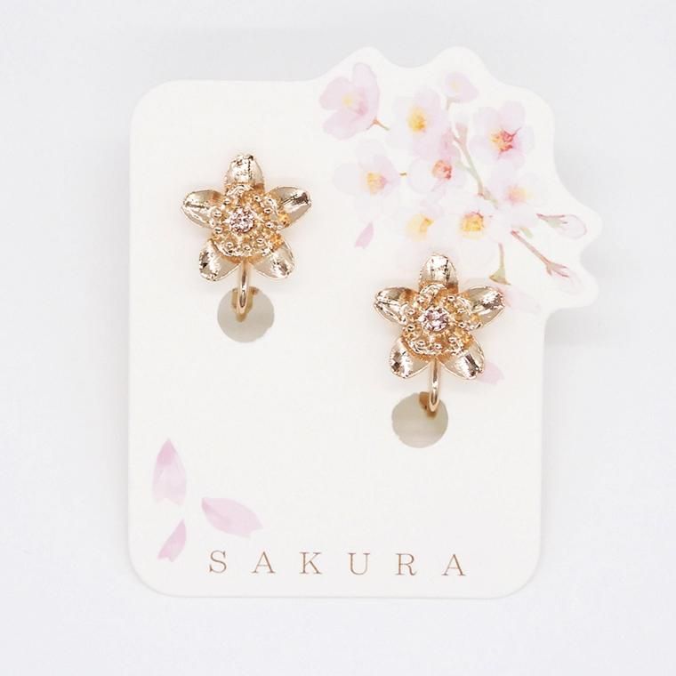 ピンクシルバーのスッキリしたピンク色にこだわったメタルのイヤリング。