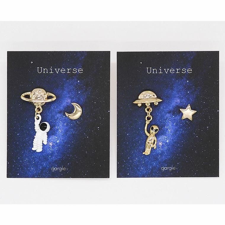 宇宙飛行士と宇宙人が土星やUFOにぶらぶらぶら下がって