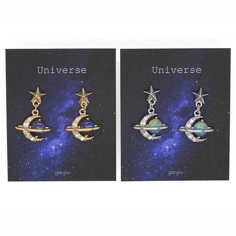 キラキラ輝くガラス石とマーブルがかったパーツがマッチしているピアスです。