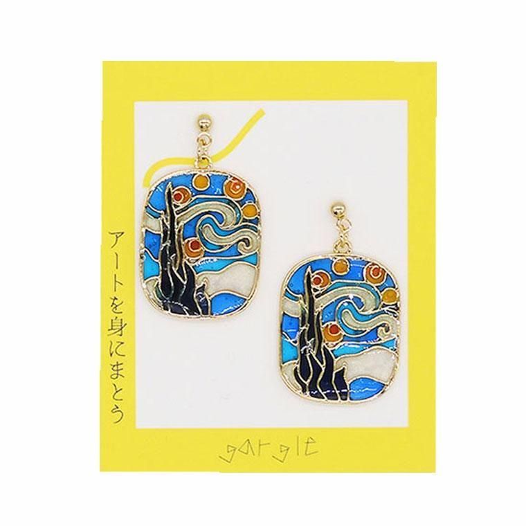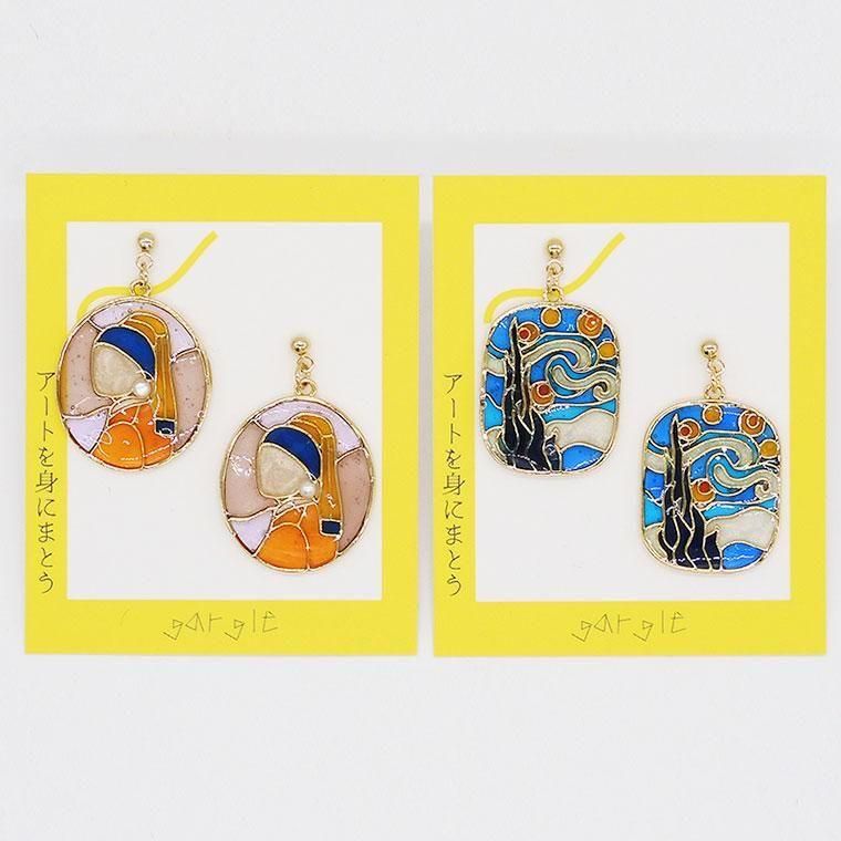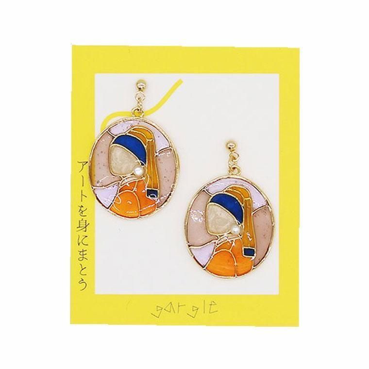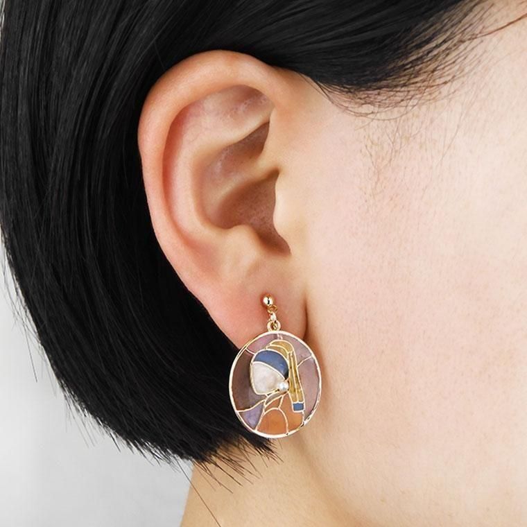 透明感あるカラーがステンドグラスのように美しいイヤリング。アートがちょっと身近になるアイテムです。