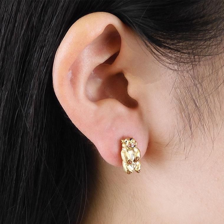 ころんとした丸いフォルムと、つぶらな瞳がチャームポイントのマーモット。キュートでユニークなピアスです。