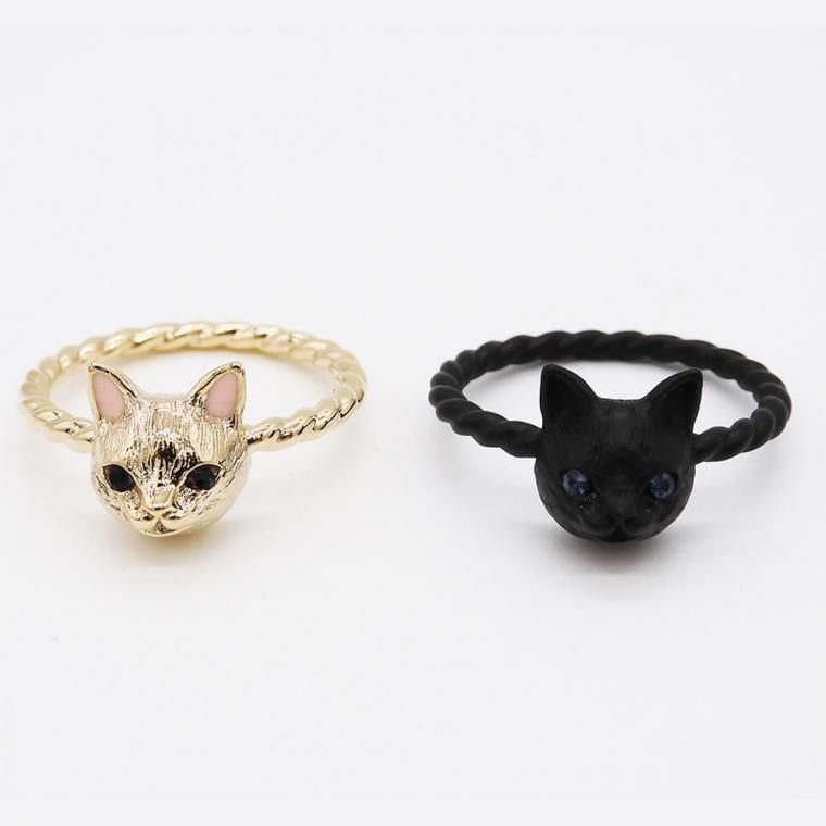 キラりと光る猫の目と可愛らしい耳がポイントのハンサムな猫リング。