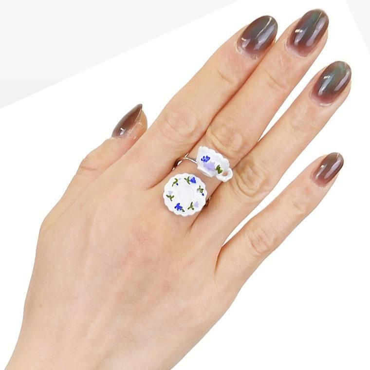 ガーリーな花柄の茶器でいただくレモンティーをミニチュアにしたアクセサリー。