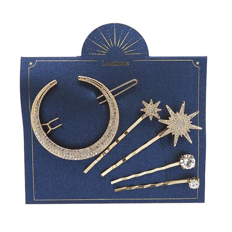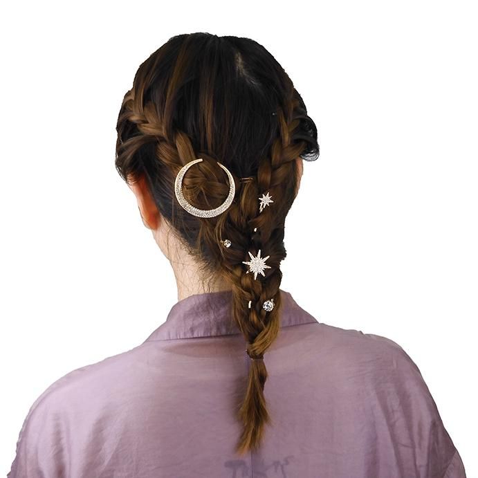 月と星をモチーフにしたラグジュアリーなヘアアクセサリーセット。 まとめ髪に添えるだけで、華やかで印象的なスタイルに。
