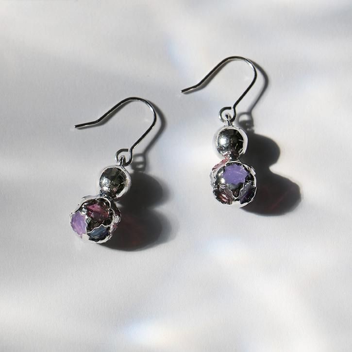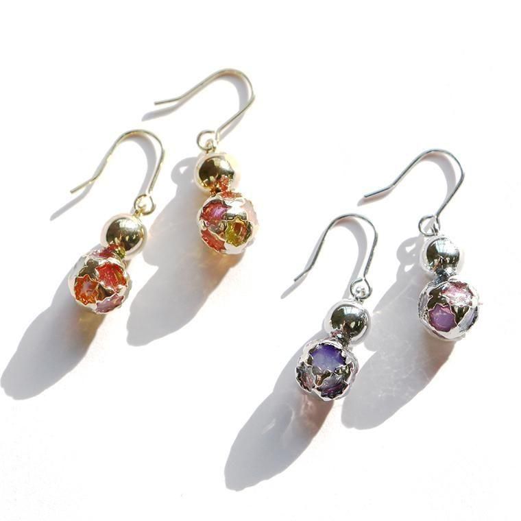 ステンドグラスのような風合いのピアス。小さく耳元で揺れるデザインは、ファッションを選ばずデイリーにお使い頂けます。