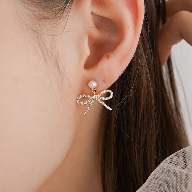 小さなリボンにジルコニアの輝きを詰めこんだ大人かわいいモチーフです。